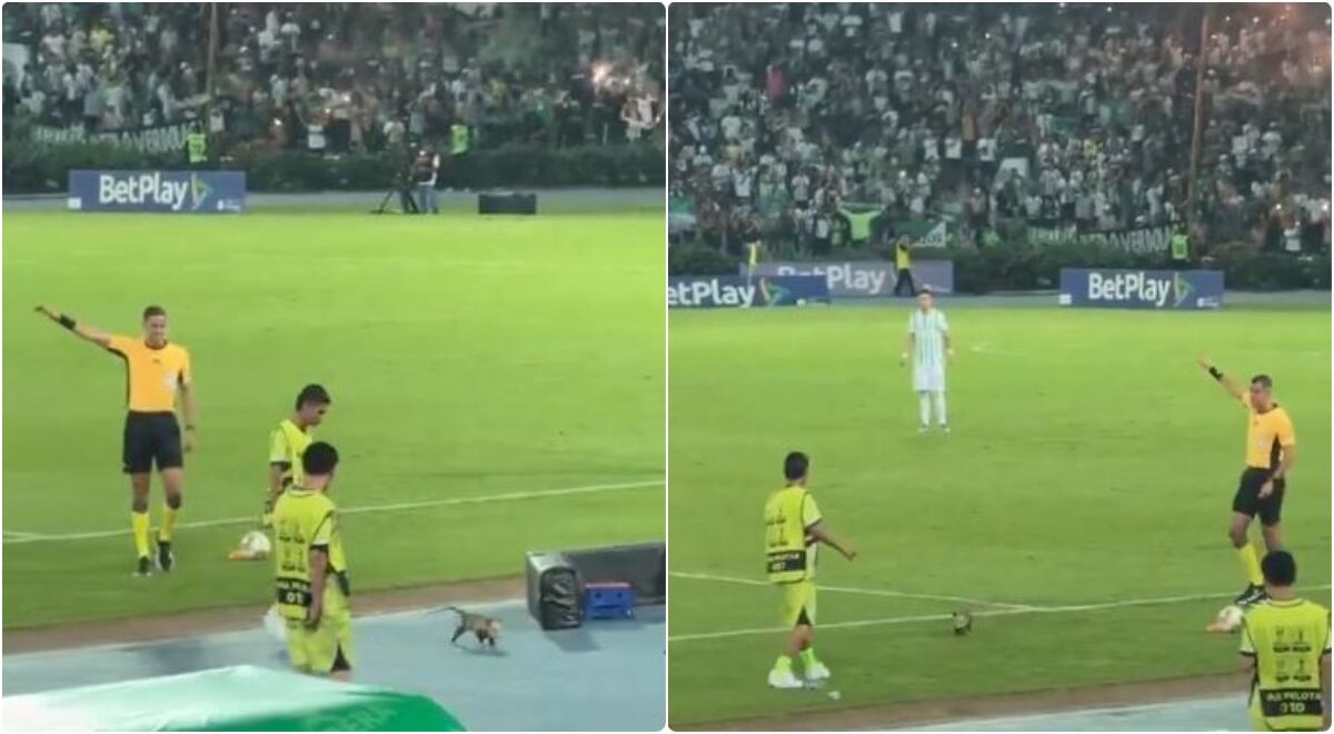 Un aficionado logró grabar desde la tribuna la curiosa situación que conmovió a muchos de los presentes, entre ellos el cuarto juez, Jhon Ospina, que no pudo evitar lanzar una sonrisa ante la situación.