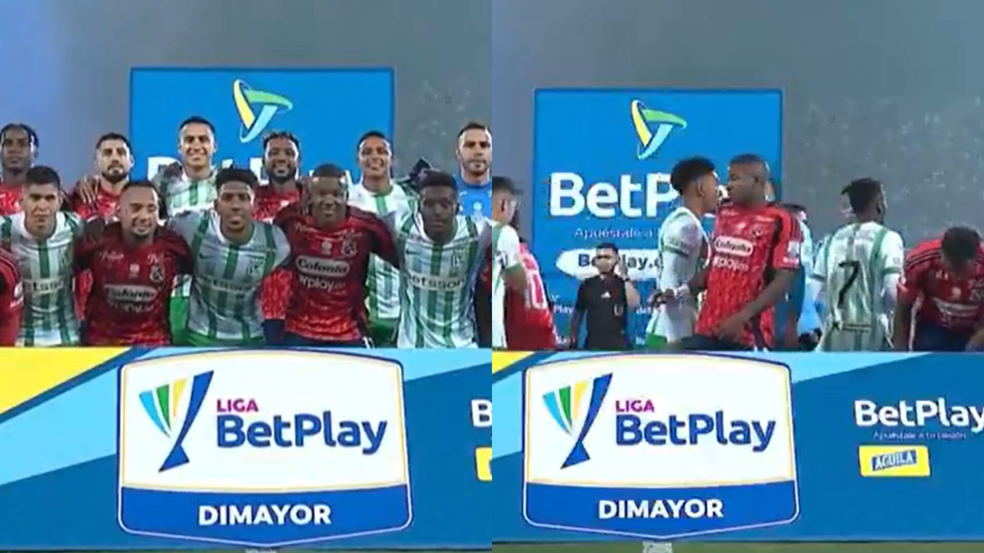 Por fortuna, para ambos, tampoco hubo expulsiones, que ha sido otra constante en el clásico paisa y en la liga en general, aunque los momentos tensos no se hicieron extrañar desde antes del pitazo inicial. Y es que en la foto previa, donde se intercalaron los futbolistas para promover el respeto y la paz entre barras, hubo un jugador que se demoró más en soltar a su rival que en empujarlo antes de partir hacia su terreno de juego, cosa que creó una fuerte controversia en redes.