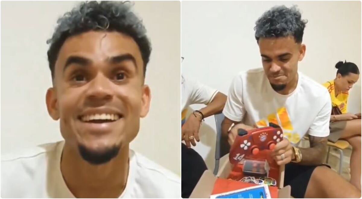 Al destaparlo, se observa un control de color rojo con botones blancos y negros, contramarcado en la parte frontal con el número 14, el nombre de Luis Díaz y el escudo del actual equipo, Bayern Múnich, a lo que el futbolista reaccionó: “Muy lindo”.