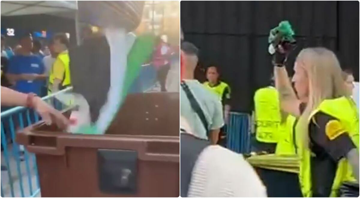Al estadio Santiago Bernabéu, en Madrid, España, prohibieron la libre expresión de los aficionados a los que no les permitieron ingresar con las banderas de Palestina con las que muchos llegaron y pretendieron ingresar al partido entre Real Madrid y Olympique de Marsella.