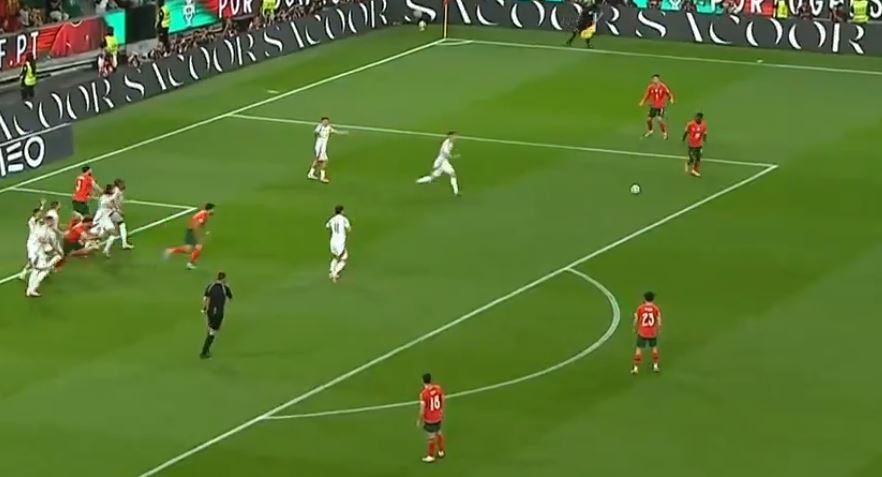 Fue con el partido 0-1, en favor de la visita, que llegó un tiro libre de costado en el que Nuno Mendes y Cristiano Ronaldo se confundieron de manera épica. Al intentar la segunda jugada, el atacante amagó a tocarle el balón a su compañero que arrancó con el mismo y de inmediato renunció al mismo, dejando el balón servido a su rival.