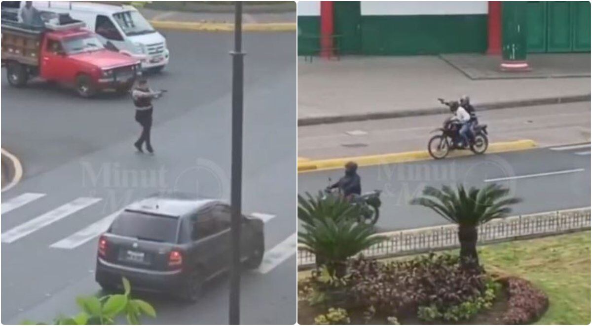 Un video aficionado registró imágenes de lo sucedido y del intercambio de disparo que tuvieron los agresores con un policía que estaba en el sector y respondió al ataque armado.