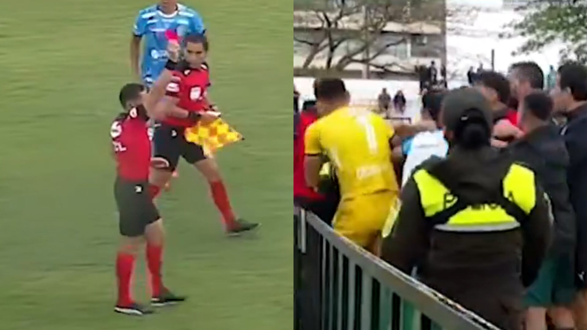 Ya con la pelota en movimiento, el equipo local se fue en ventaja, pero poco importó con lo que terminó siendo el encuentro. A los 35 minutos del primer tiempo, se dio un cruce entre futbolistas que derivó en una batalla campal donde llovieron puños, patadas e insultos, donde, tras varios minutos de pausa mientras la policía intentaba devolver el orden al juego y una revisión intensa del VAR, el juez tomó la decisión de echar a cinco jugadores de una vez.