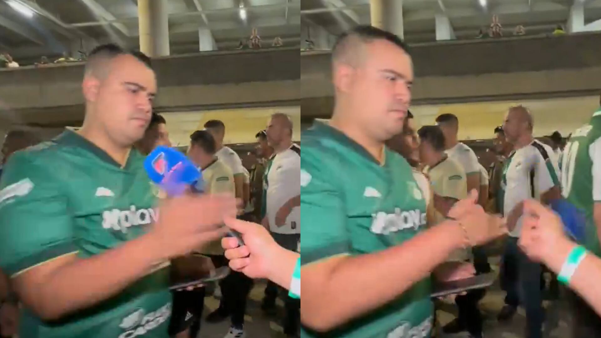 Aunque esta forma de expresar la impotencia es mala, la de otro hincha a la salida del recinto fue peor, pues mientras caminaba al lado de uno de los medios que, tradicionalmente, toman la opinión de los aficionados después de los encuentros, decidió agredir al reportero golpeando con fuerza el micrófono y desarmándolo justo en medio de la multitud de personas que pasaban por la zona.