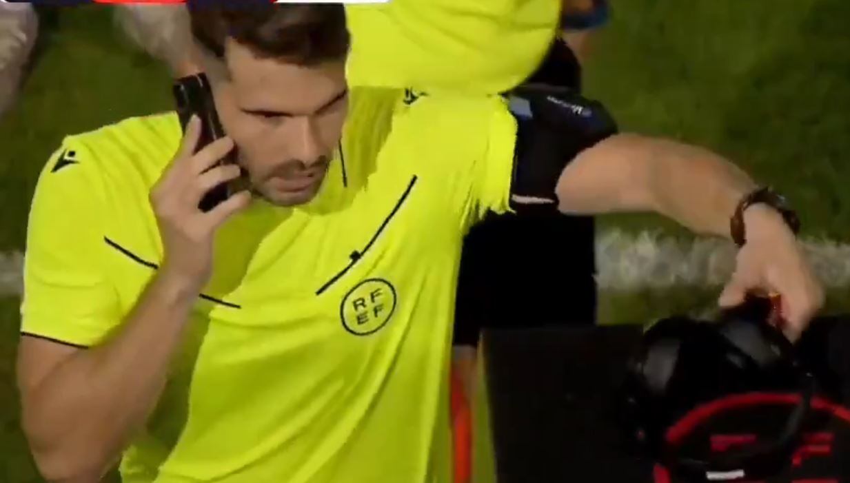 Imágenes surrealistas en el fútbol aparecen cada semana, pero esta situación que se dio en España tiene sorprendidos a propios y extraños cuando el árbitro de un partido de la Primera Federación se puso en una llamada en medio de una revisión del VAR.