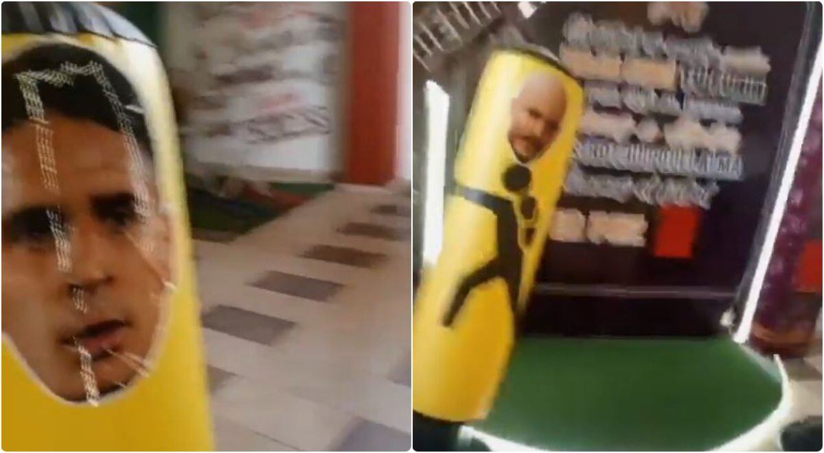 En el estadio Manuel Murillo Toro de la ciudad de Ibagué sorprendieron a propios y extraños con una estrategia de mercadeo en la que los hinchas tienen la posibilidad de golpear los rostros de personajes poco queridos por ellos como Daniel Cataño o el entrenador David González.