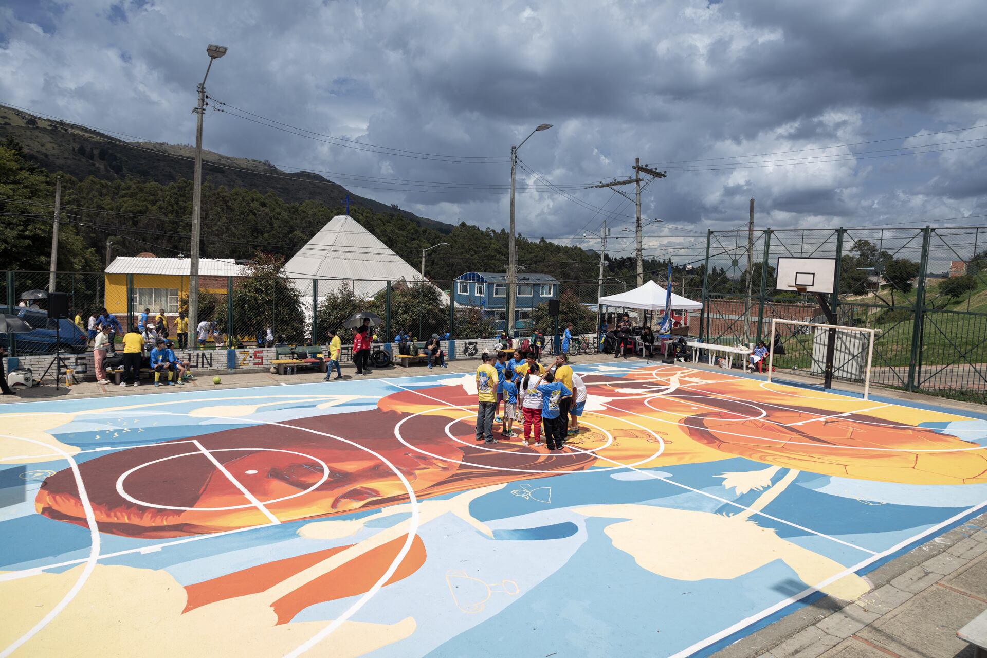 Juliana Gómez: ““Ha sido un proceso de construcción colectiva. Hicimos un ejercicio de intervención artística con adultos, niños y niñas de la comunidad para reconocer el trabajo de tantos líderes que a diario salen con su balón de fútbol bajo el brazo para cambiar la vida de miles de niños. Sabemos que el fútbol es un lenguaje universal y lo estamos utilizando como herramienta para que los espacios comunitarios y deportivos sean seguros. El fútbol se convierte en una excusa que nos permite atender muchos de los desafíos que tenemos como sociedad porque se juega en cualquier rincón del país, es comunitario, de barrio y callejero.