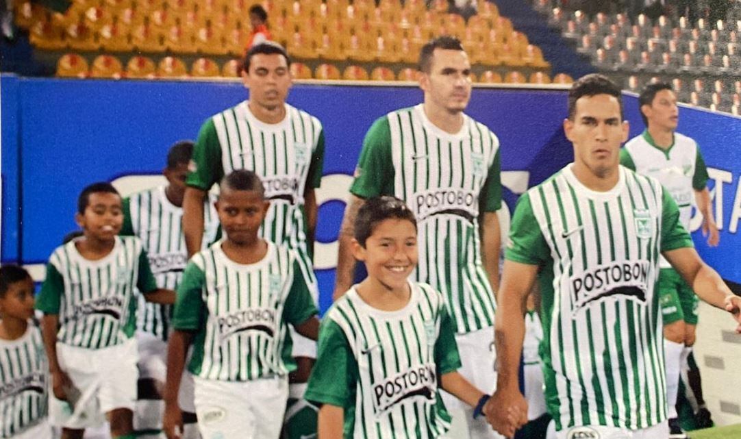 Gran postal en la que Samuel Velásquez pasó de ser un pequeño acompañante rumbo al terreno de juego para convertirse en jugador profesional con Atlético Nacional.