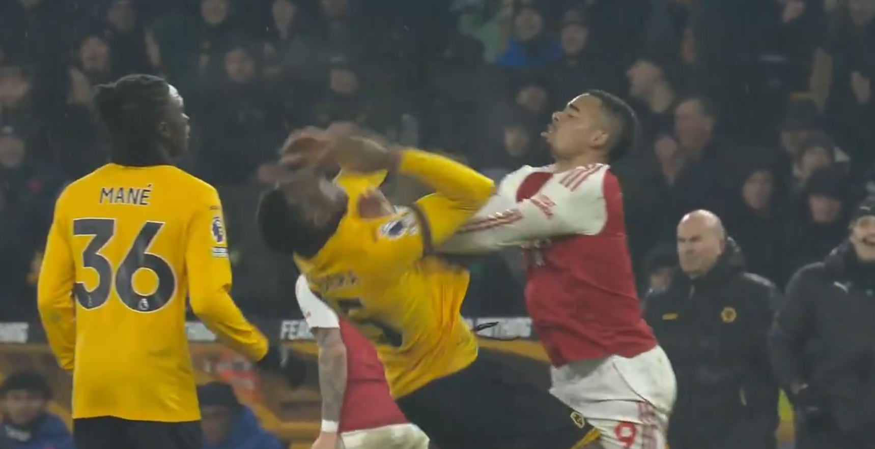 Acalorado terminó el duelo entre Wolverhampton y Arsenal, con el colombiano Yerson Mosquera de por medio, recibiendo un fuerte empujón de Gabriel Jesús, que lo sacó a volar y se armó una bronca con la que cerró el partido.