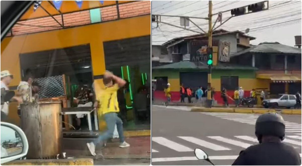 Algunas cuentas han reportado la situación en donde se observan enfrentamientos en las inmediaciones del estadio e incluso se ve como hinchas locales arrojan piedras a establecimientos comerciales en donde departían los colombianos.