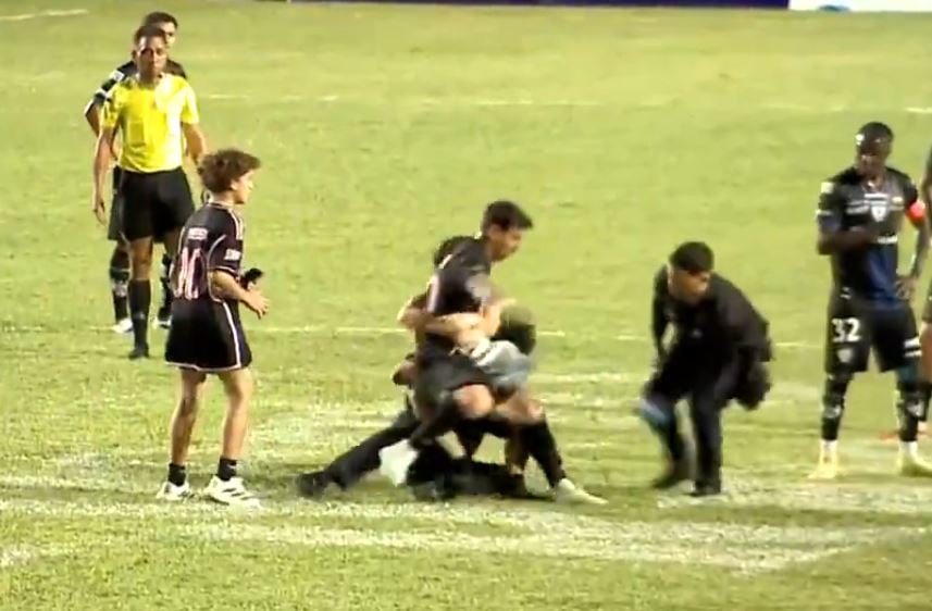 Por si fuera poco, en medio del juego se armó una gran gresca entre ambos equipos y ni se distinguió quién la emprendía contra quién. Eran los de negro contra los de negro.