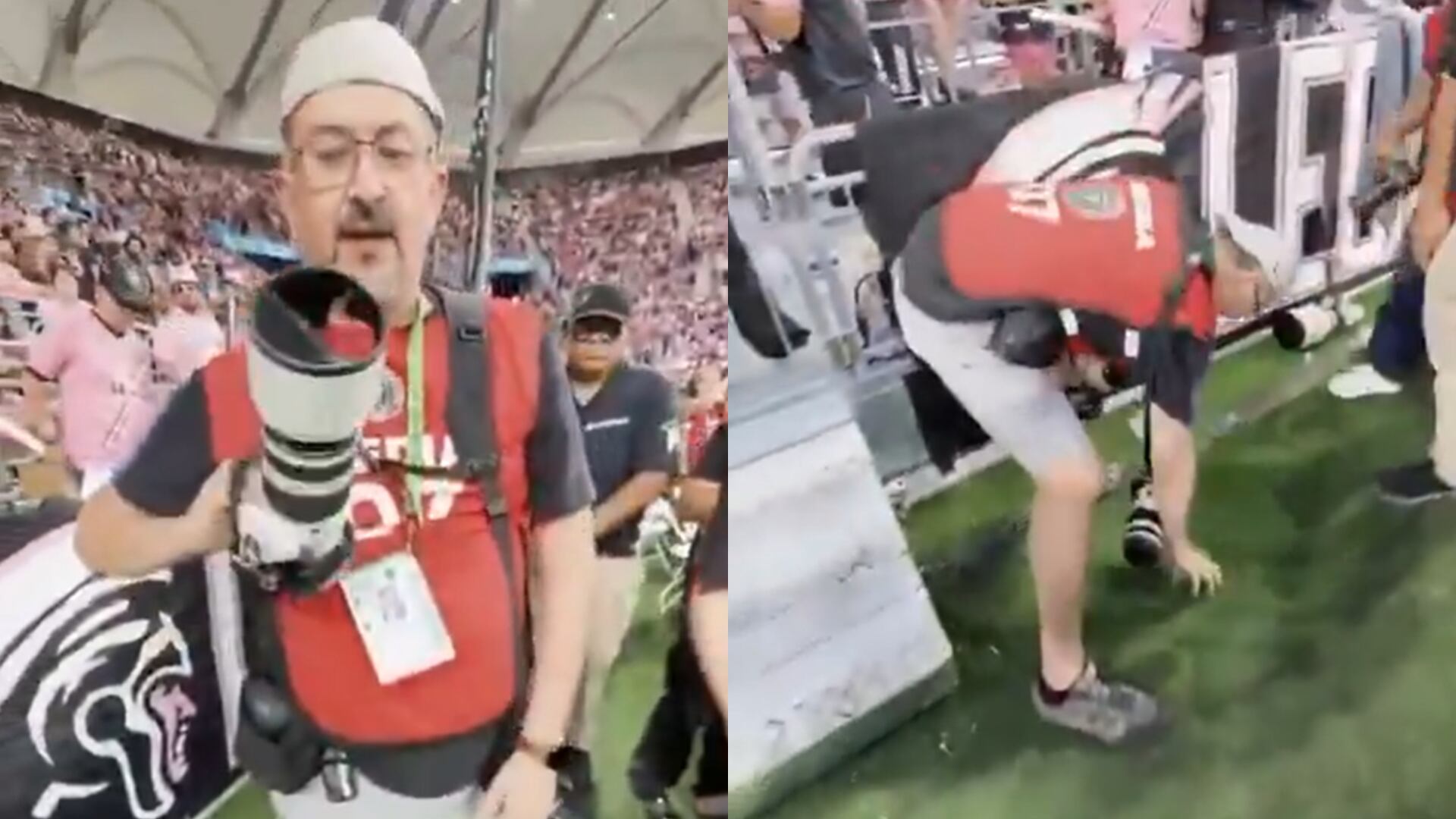 Las imágenes del momento muestran cómo el balón golpea el lente del dispositivo, provocando la caída del camarógrafo y evidenciando daños en el equipo. Aunque el impacto fue inesperado, el profesional no sufrió lesiones de gravedad y pudo reincorporarse tras recibir asistencia en el lugar.