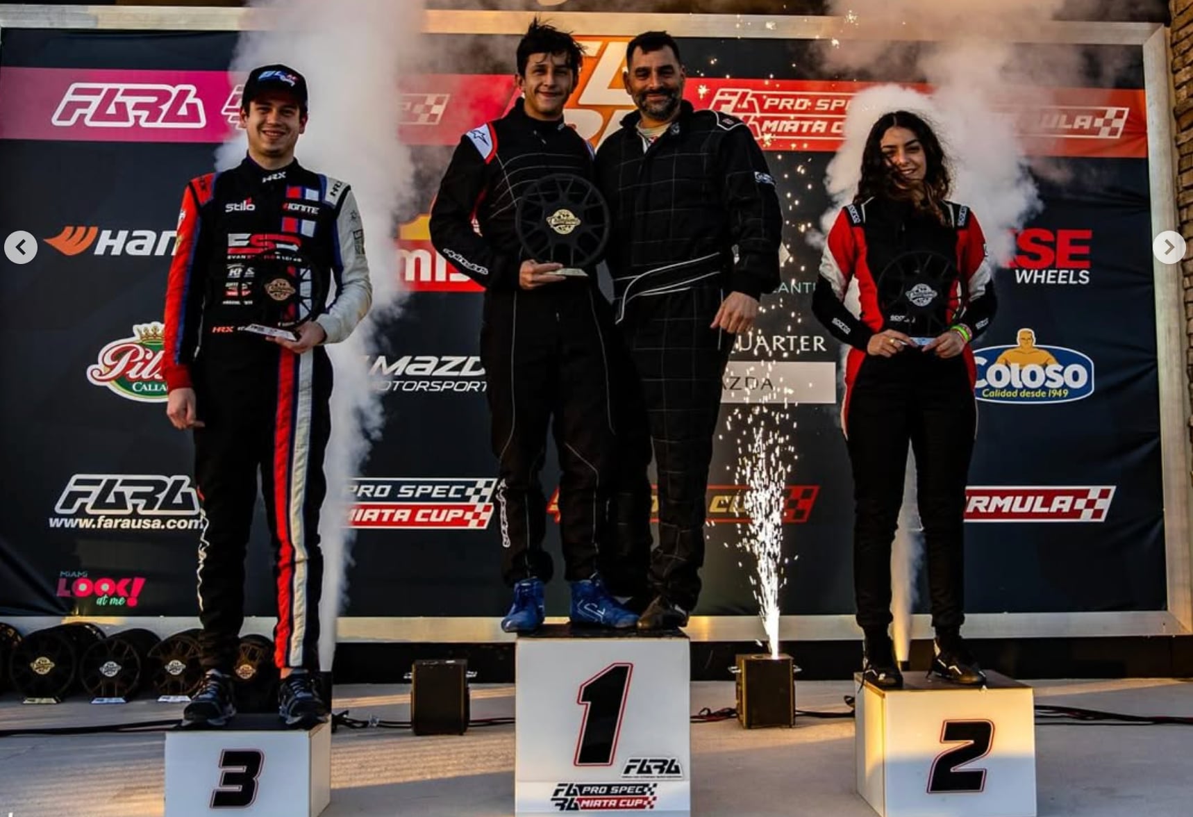 Ese patrón se repitió en suelo estadounidense. En el legendario Sebring International Raceway, Luengas se impuso en su primera carrera de Spec Miata partiendo desde el fondo de la grilla y con un auto de repuesto poco preparado para competir. Una hazaña que resume su capacidad de adaptación y su instinto competitivo.