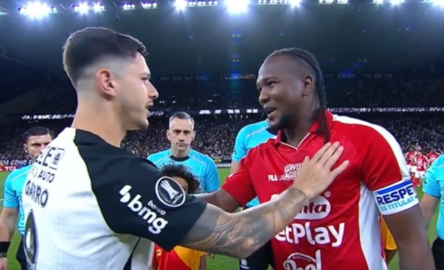 Hugo Rodallega pasó colores en el protocolo previo de la Copa Libertadores durante el sorteo de capitanes durante el partido en el que Independiente Santa Fe visitó a Corinthians y todo de cuenta de un ‘olvido’.