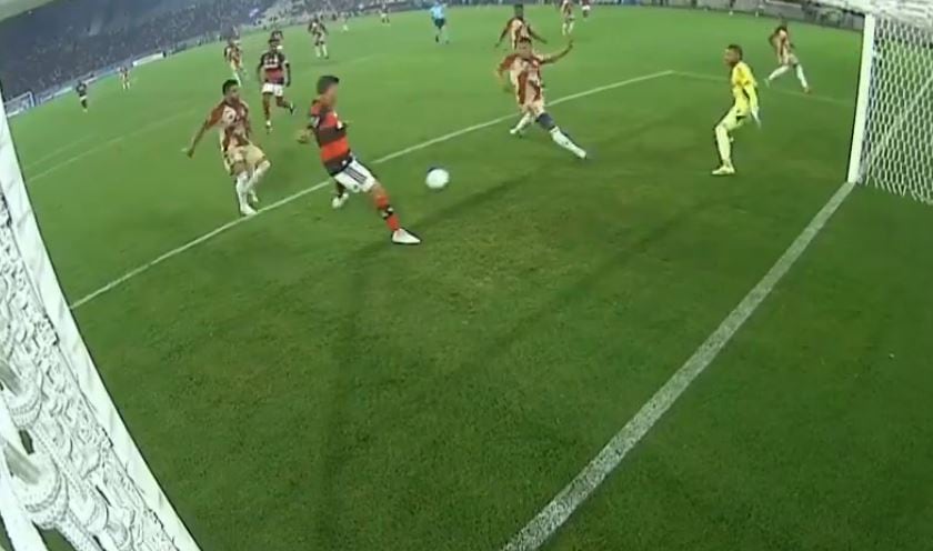 En una de las primeras acciones del encuentro, Flamengo atacó por la banda izquierda en donde llegó libre Samuel Lino para cruzar el balón a todo el centro del área chica en donde apareció el colombiano Jorge Carrascal que se atragantó de gol y no logró impactar el balón de la mejor manera, enviando el balón por fuera cuando tenía todo el arco a su disposición.