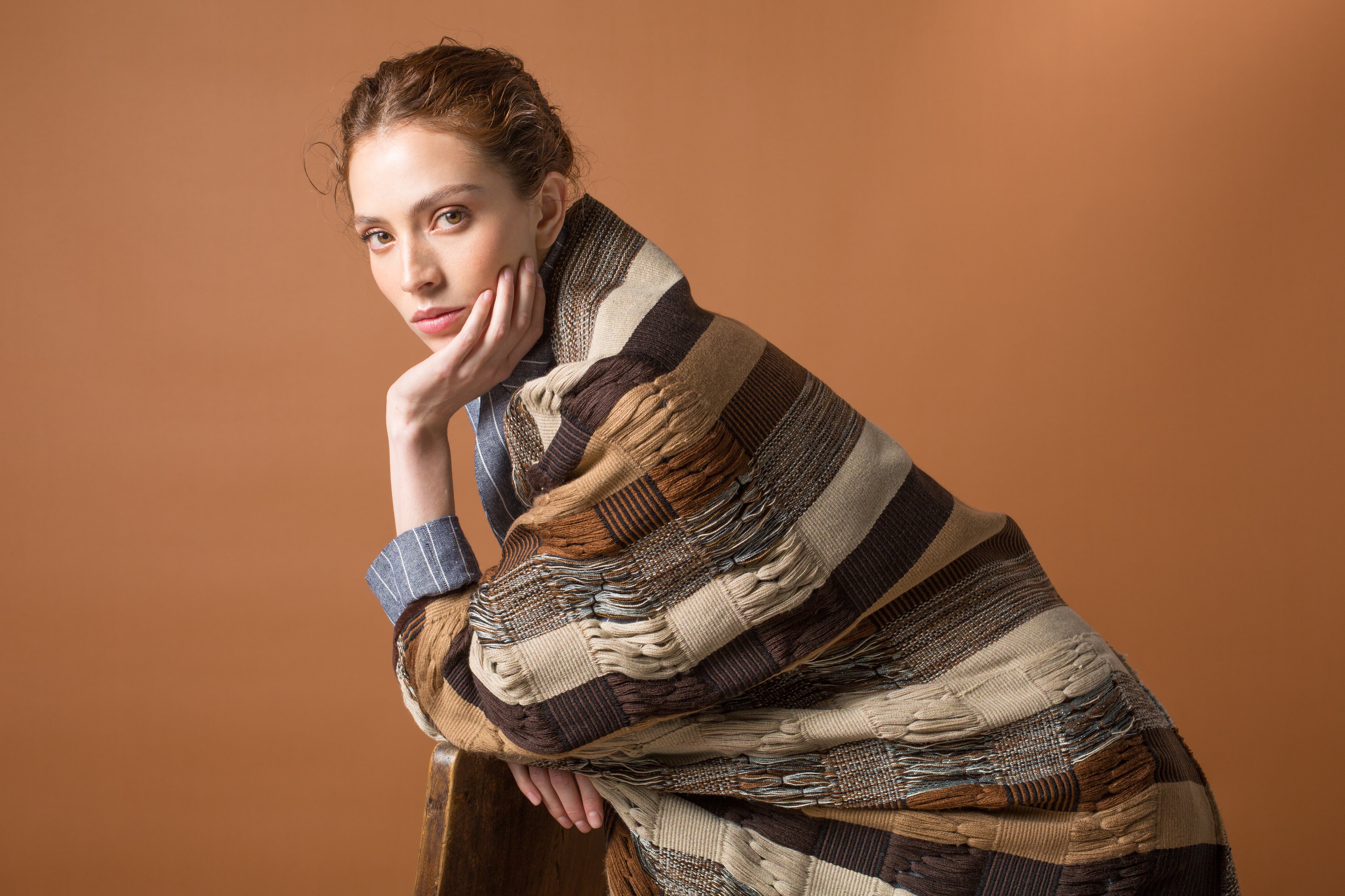 La paleta de color parte de los grises y cafés hasta tonos camel, contrastando con rojos y negros, y dando luz a través de verdes y fucsias.En su construcción, “Mística” honra los saberes textiles ancestrales con la participación de cerca de 30 artesanos que trabajaron técnicas como elIkat (teñido por amarres),los brocados en alto relieve, fieltros, y la tejeduría en telares verticales y horizontales.