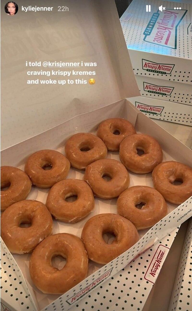 Y es que la fundadora y propietaria de Kylie Cosmetics ha compartido a través de redes sociales, que despierta por las mañanas con antojo de las donas glaseadas de Krispy Kreme.