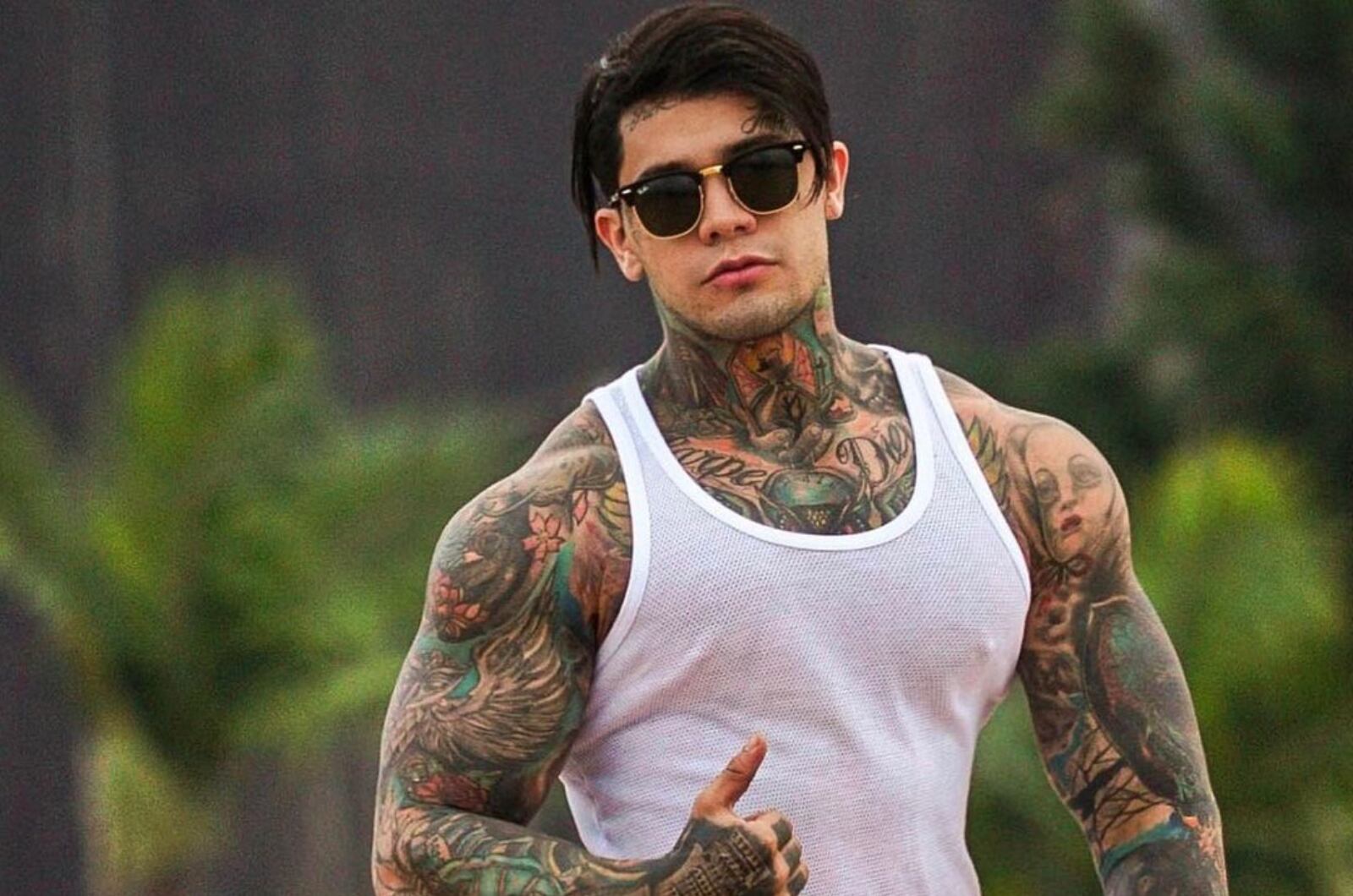 En la primera, tiene 17 años, el pelo más largo que ahora y una cara todavía muy infantil. En la segunda se lo ve a inicios de los 20, en un foto estudio. En esta ya se parece más al personaje que es hoy, de hecho, ya tiene uno de sus tatuajes en el cuello que hoy hacen parte del personaje que es.