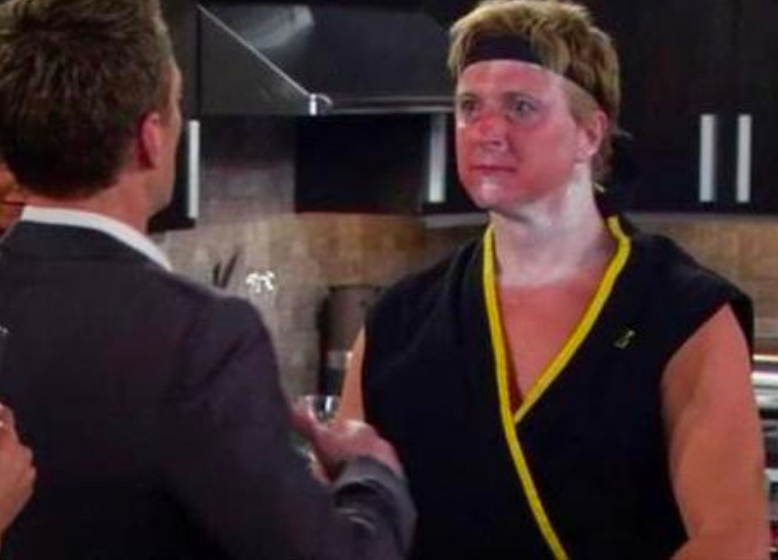 En el episodio 22 de la temporada ocho, titulado “El Mitzvah de los colegas”, “Ted”, “Robin”, “Marshall” y “Lily” organizan una despedida de soltero para “Barney”, quien tiempo atrás escribió una lista de lo que deseaba para esta ocasión, la cual incluía la presencia del “Karate Kid”.