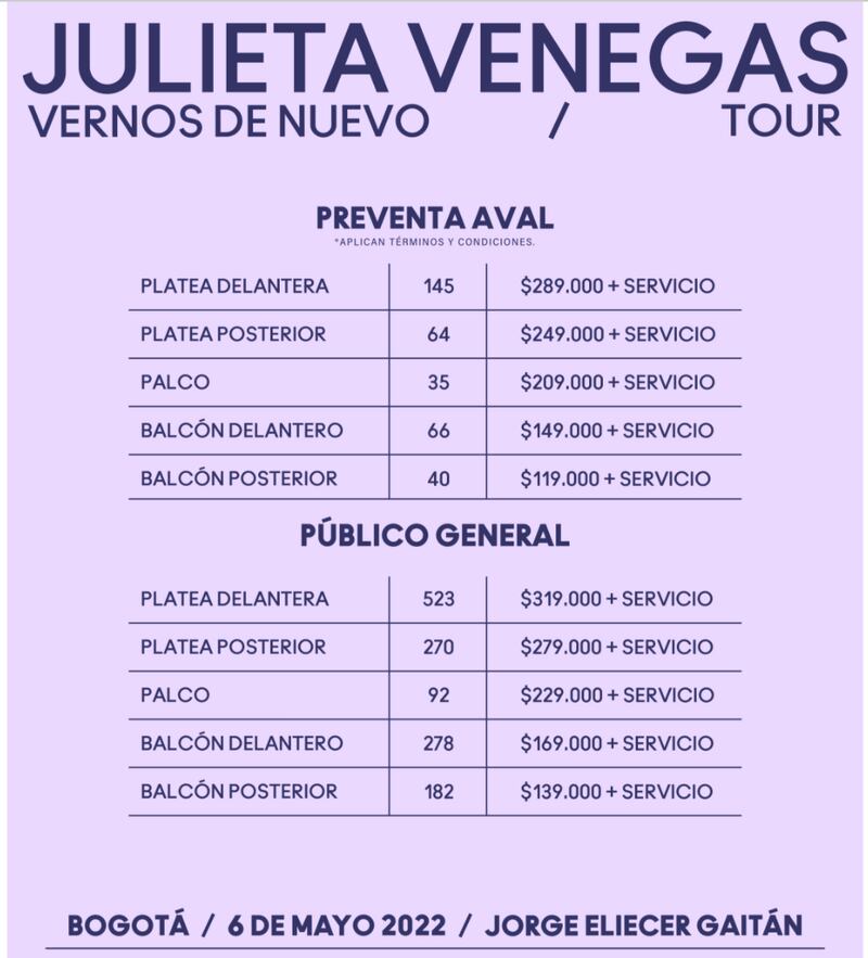Gracias la plataforma de entretenimiento de los Bancos Aval (Bogotá, Occidente, Popular y AV Villas), los clientes podrán acceder a las entradas en preventa exclusiva desde 24 de enero desde las 9:00 am hasta el 26 de enero a las 8:59 am o hasta agotar unidades disponibles en TuBoleta.