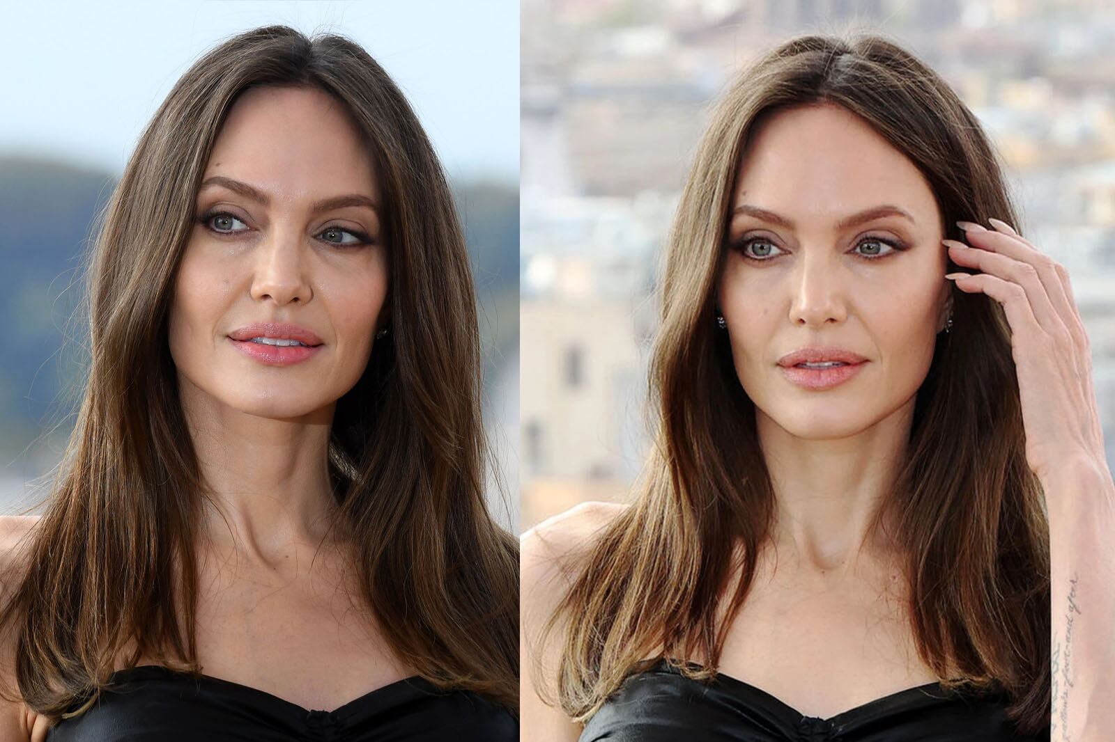 La elegancia natural del atuendo de Angelina se extendió también a su beauty look, luciendo su melena castaña suelta perfectamente alisada.