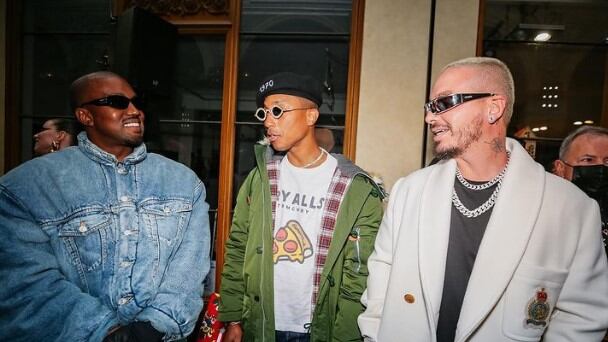 El colombiano J Balvin sorprendió en el evento donde se reunió con Kanye West y Pharrell Williams en el desfile Nigo X KENZO. El músico llevó a la cita con su pareja Valentina Ferrer; él con un look completamente en negro de falda larga de la firma Louis Vuitton. No faltaron sus lentes de sol y grandes anillos de diamantes.
