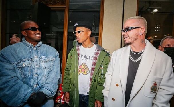 El colombiano J Balvin sorprendió en el evento donde se reunió con Kanye West y Pharrell Williams en el desfile Nigo X KENZO. El músico llevó a la cita con su pareja Valentina Ferrer; él con un look completamente en negro de falda larga de la firma Louis Vuitton. No faltaron sus lentes de sol y grandes anillos de diamantes.