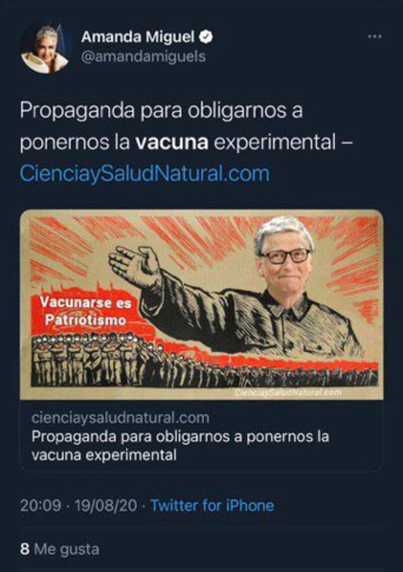 En repetidas ocasiones Amanda Miguel mostró su postura antivacunas