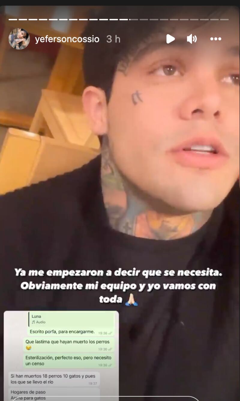 Tras conocer lo sucedido y ver que además, muchos animales se han visto afectados por el deslizamiento, Cossio confirmó por medio de sus redes sociales que tanto él como su equipo se encuentran trabajando para enviar donaciones que puedan servir para mermar los impactos de esta tragedia.