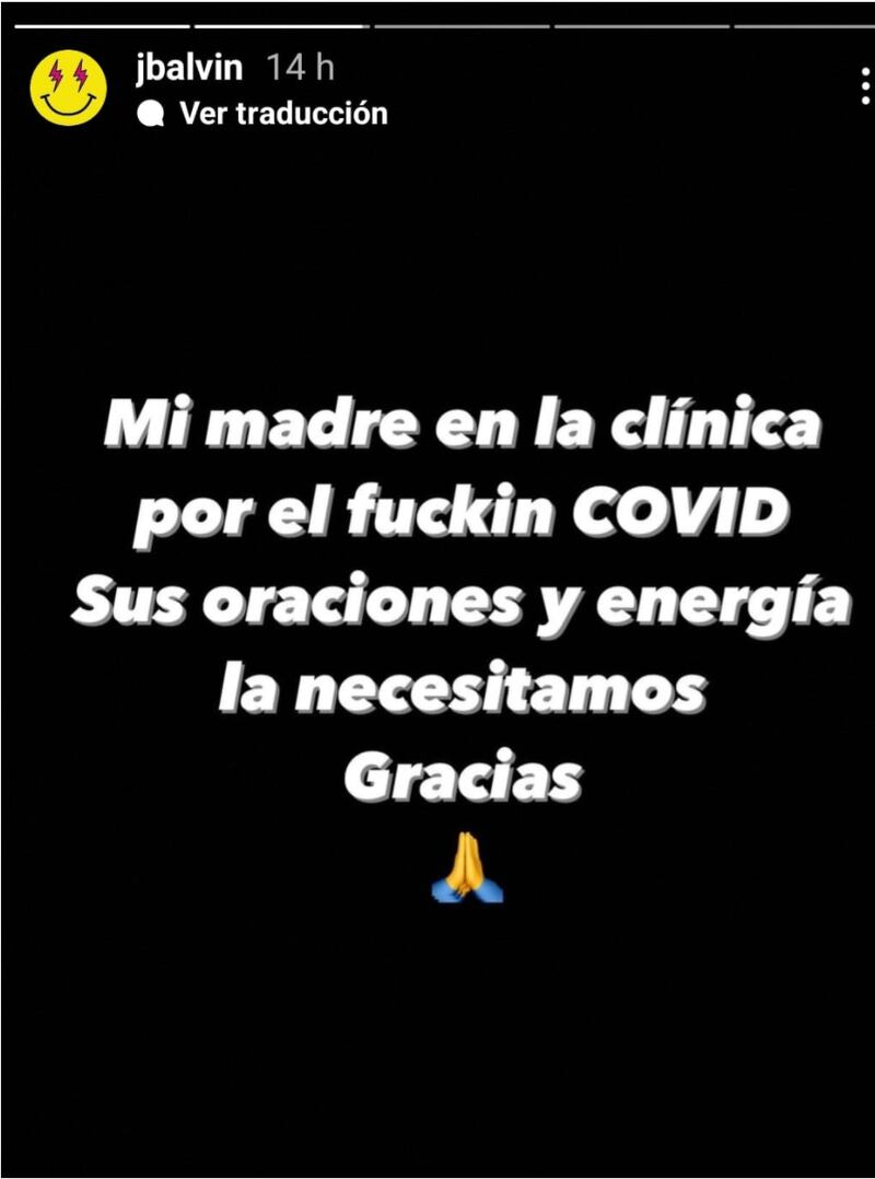 Hace tan solo unos días, José ‘J’ Balvin comentó por medio de sus redes sociales que se encontraba con un alto grado de preocupación debido a que su mamá había sido internada en una clínica por complicaciones relacionadas al Covid-19.