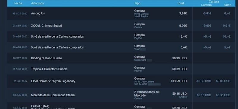 Probablemente la plataforma que ofrece un mejor vistazo de las compras de videojuegos es Steam, que incluye hasta las compras de regalos que hayan hecho los jugadores. Steam permite ver las fechas, las monedas en las que se pagó un título y hasta los métodos de pago utilizados.