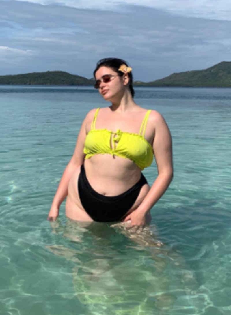 Ella no teme lucir sus curvas en cualquier tipo de prenda, incluyendo bikinis, y no usa trajes de baño enterizos, al contrario, opta por modelos de dos piezas, dando lecciones.