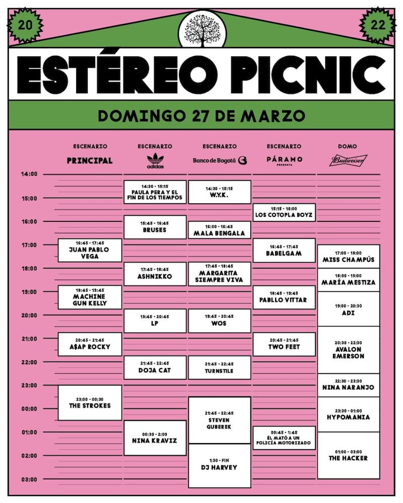 Aquí ya están los horarios definitivos que marcarán nuestra ruta durante los 3 mejores días del año del Estéreo Picnic.