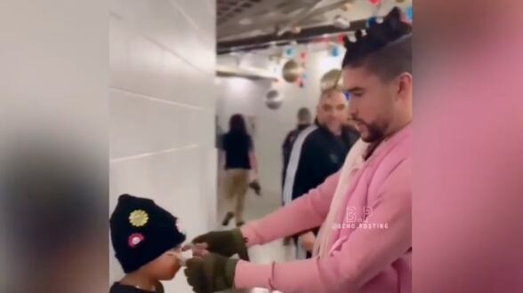 “A esa pinta le hace falta algo”, dijo Bad Bunny quien posteriormente se quitó sus gafas y se las regaló al pequeño.