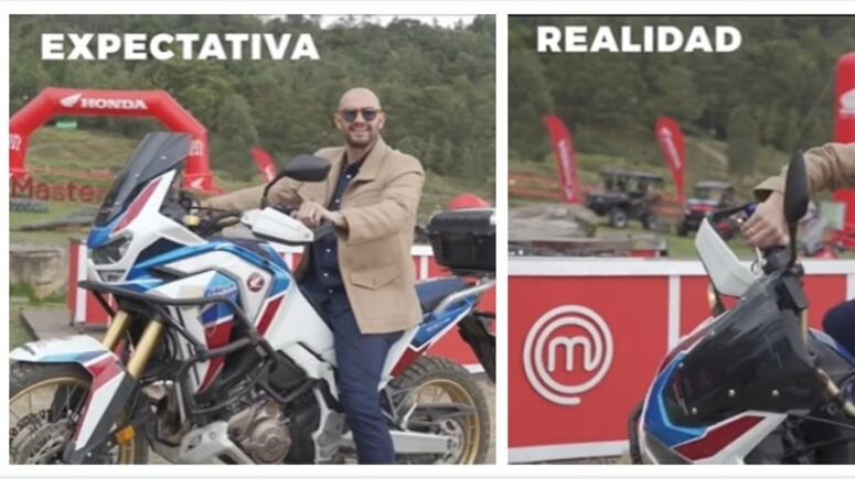 El jurado de MasterChef estaba en la presentación del programa y debía entrar al plano manejando una moto de alto cilindraje que haría parte de una de las pruebas. El reto consistía ir a al mercado en moto.