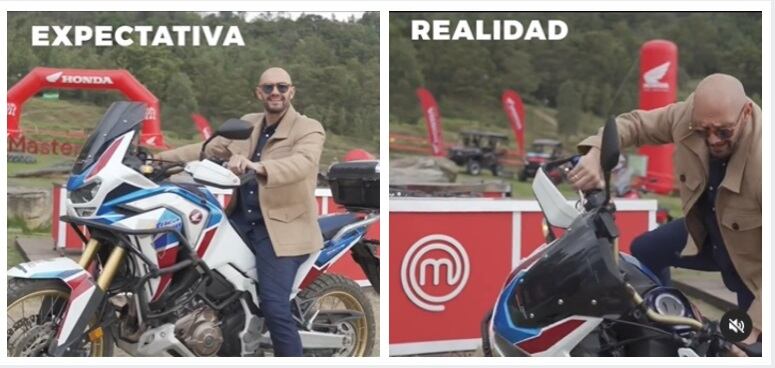 El jurado de MasterChef estaba en la presentación del programa y debía entrar al plano manejando una moto de alto cilindraje que haría parte de una de las pruebas. El reto consistía ir a al mercado en moto.