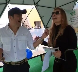 Pero dentro de uno de los principales toldos de ventas, se mostró acompañado de su hija María del Mar y de su esposa, quien no dudó en imitar el acento español para la grabación del video.