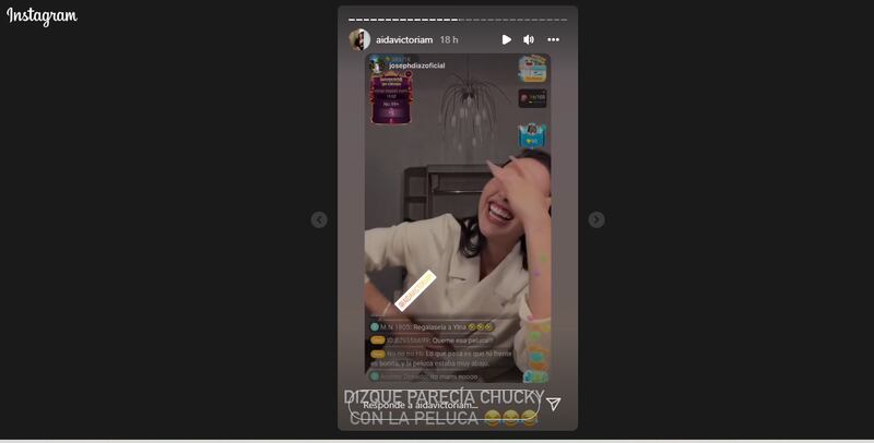 En medio de una transmisión On- Line, la creadora de contenido leyó el comentario de un internauta al mencionarle su parecido con chuky por usar la peluca, a lo que ella no pudo evitar reirse y recalcar que a su percepción le había gustado usarla.