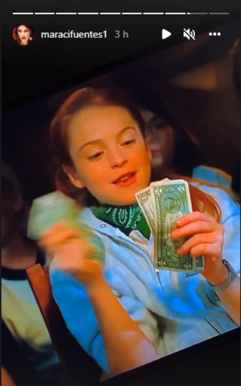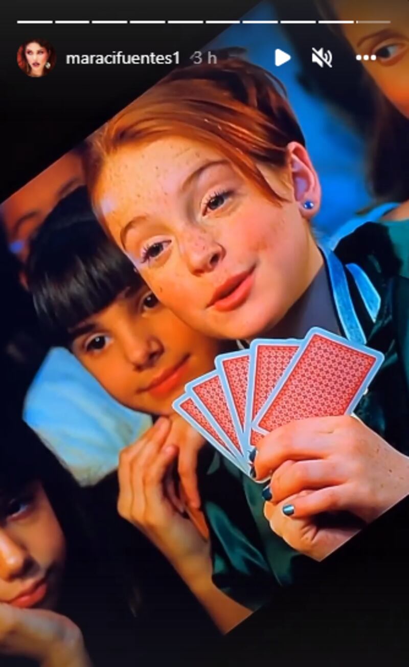 Y es que en una de sus historias de Instagram Mara Cifuentes publica que está viendo en su televisor la película protagonizada por Lindsay Lohan, “Juego de Gemelas”, uno de los primeros filmes que la actriz estadounidense realizó.