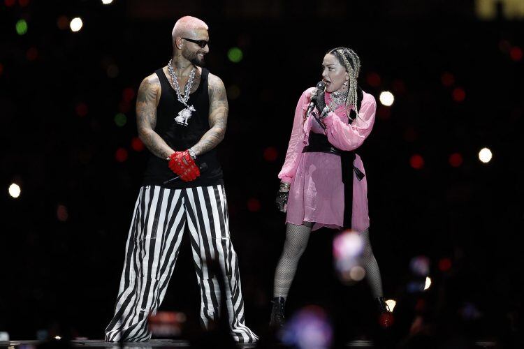 Llegó la hora de la presentación de Maluma junto a Madonna, y los aplausos y gritos inundaron el Estadio Atanasio Girardot de Medellín. La estadounidense cantó algunas partes en español de las canciones de Maluma, así como las canciones icónicas que han sido un himno durante toda su carrera como ‘Music’. Pese a los comentarios negativos de algunos internautas mencionando que Madonna se veía “Vieja”, y que le look que tuvo no fue el adecuado, fueron más los elogios hacia ella y hacia el paisa.
