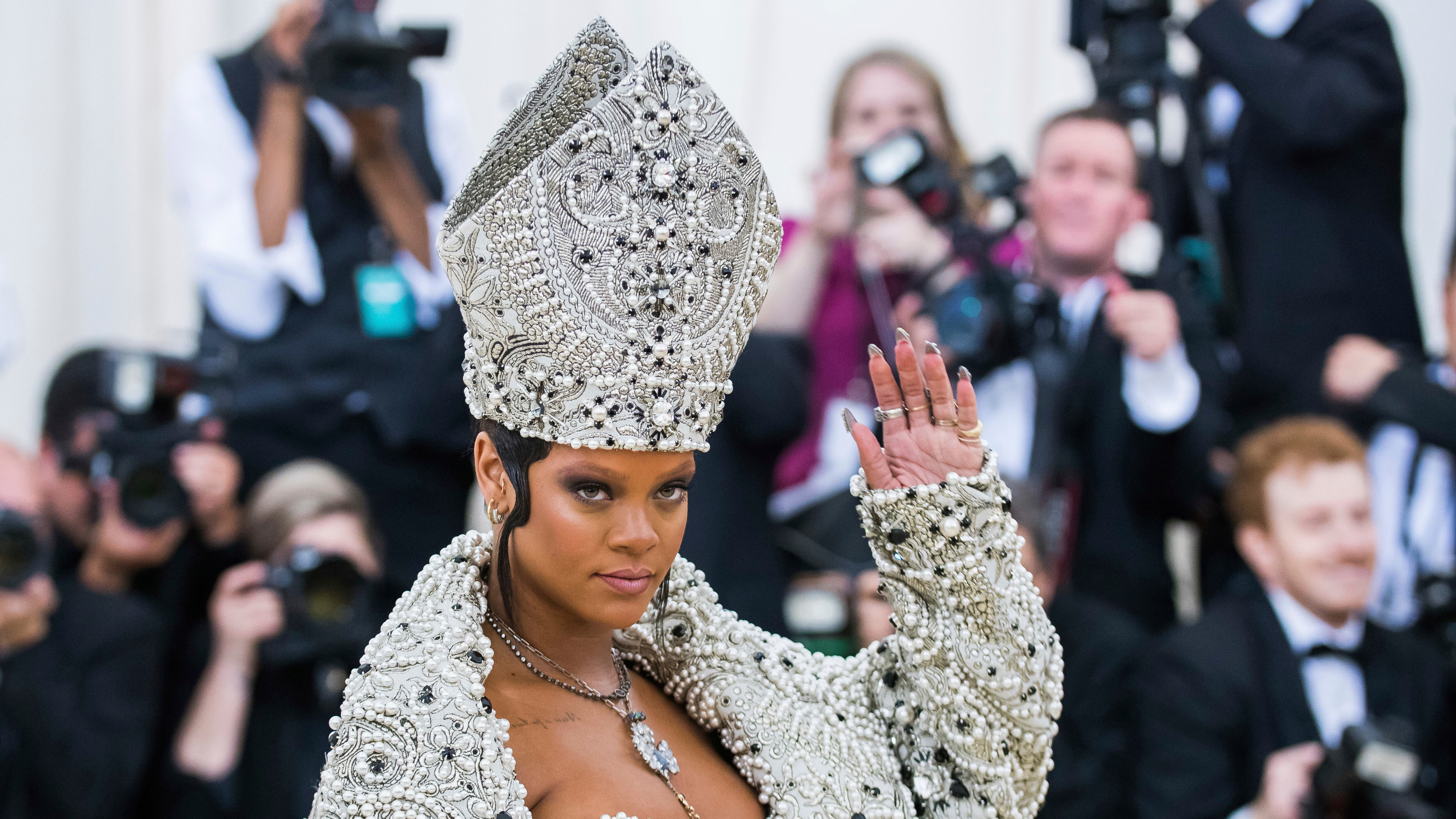 La cantante que está próxima a ser mamá, Rihanna, se ha caracterizado también por ser referente de la Met Gala con grandes atuendos, destacando el de la Met Gala del 2018, donde “Riri” le hizo homenaje al Papa, usando una prenda diseñada por Maison Margiela.