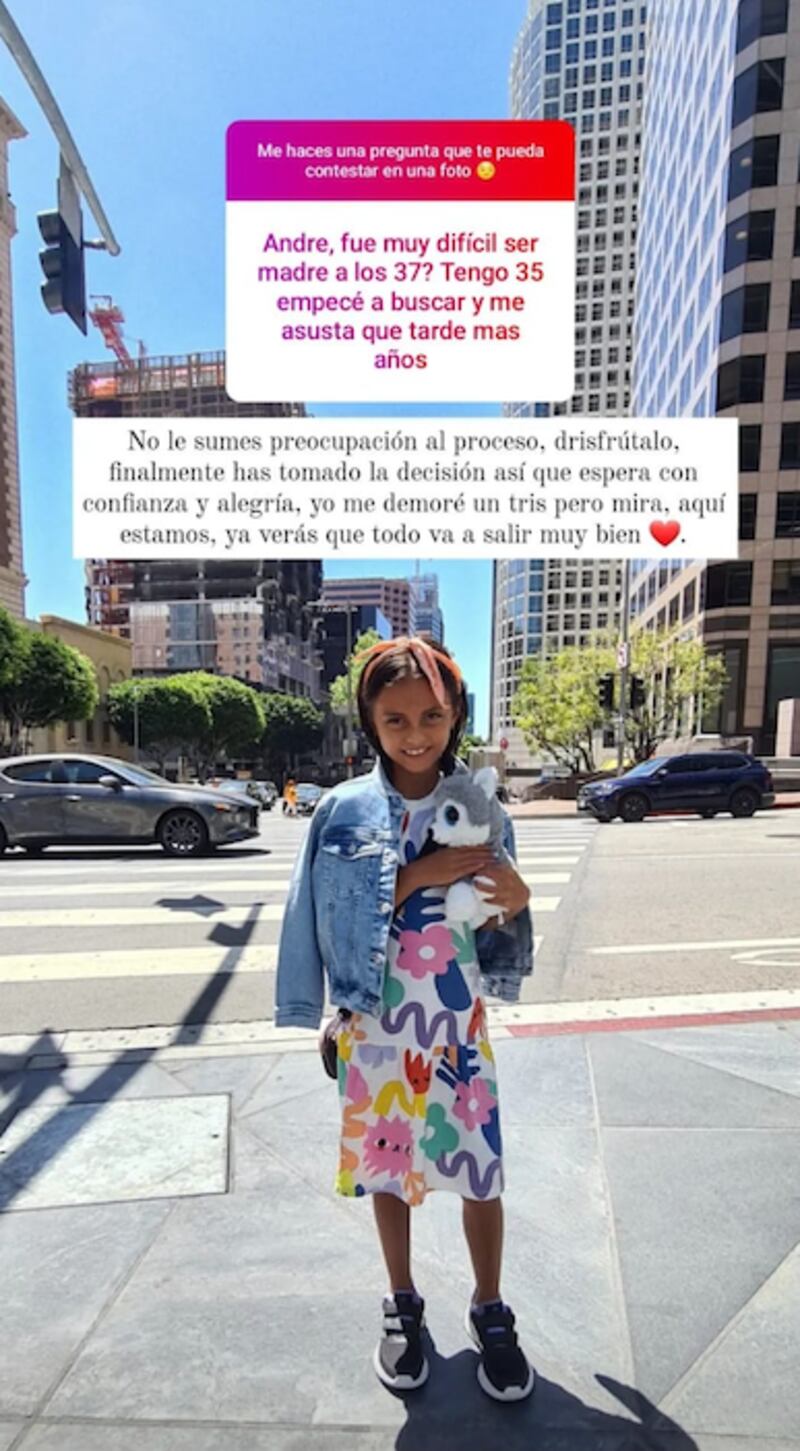 “Andre, fue muy difícil ser madre a los 37? Tengo 35 empecé a buscar y me asusta que tarde más años”, fue la pregunta de la usuaria de las redes sociales.