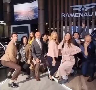 Este desafío viral, que fue promovido por la comediante Atsuko Okatsuka mientras en un paseo con su abuela miraba fija y seriamente el cámara justo cuando descendía en cuclillas al ritmo de la canción, es el emulado por el reparto.