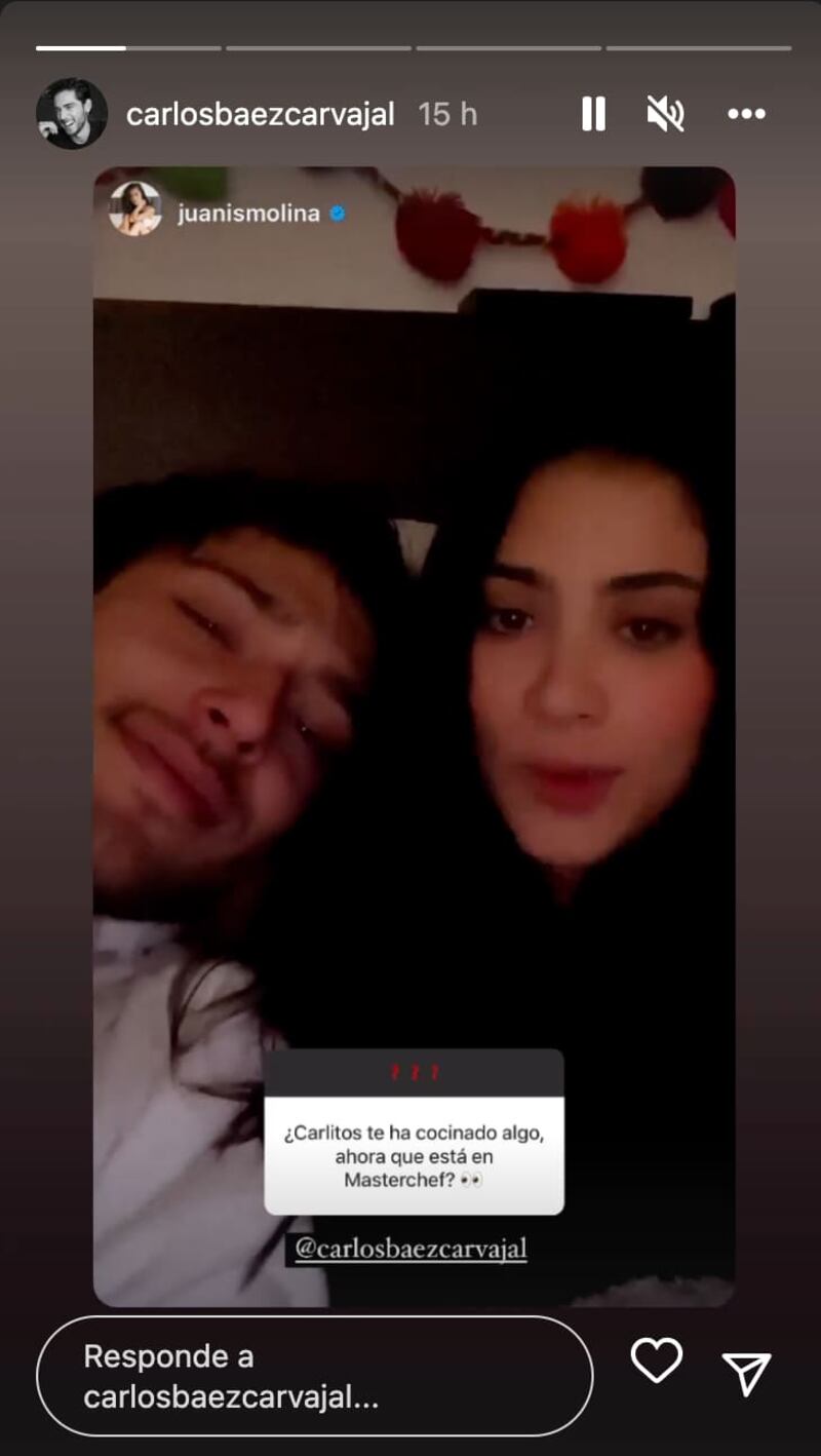 “¿Carlitos te ha cocinado algo, ahora que está en MasterChef?”, pregunta uno de los seguidores de la actriz. Seguidamente, Molina le dejó saber a todos sus fans que de momento no ha probado nada “bueno” de lo que su novio cocina. “Nada. Cero, cero, cero. Lo único que le probé fue lo del principio, de lo bueno no me ha tocado nada”, dijo la influencer.