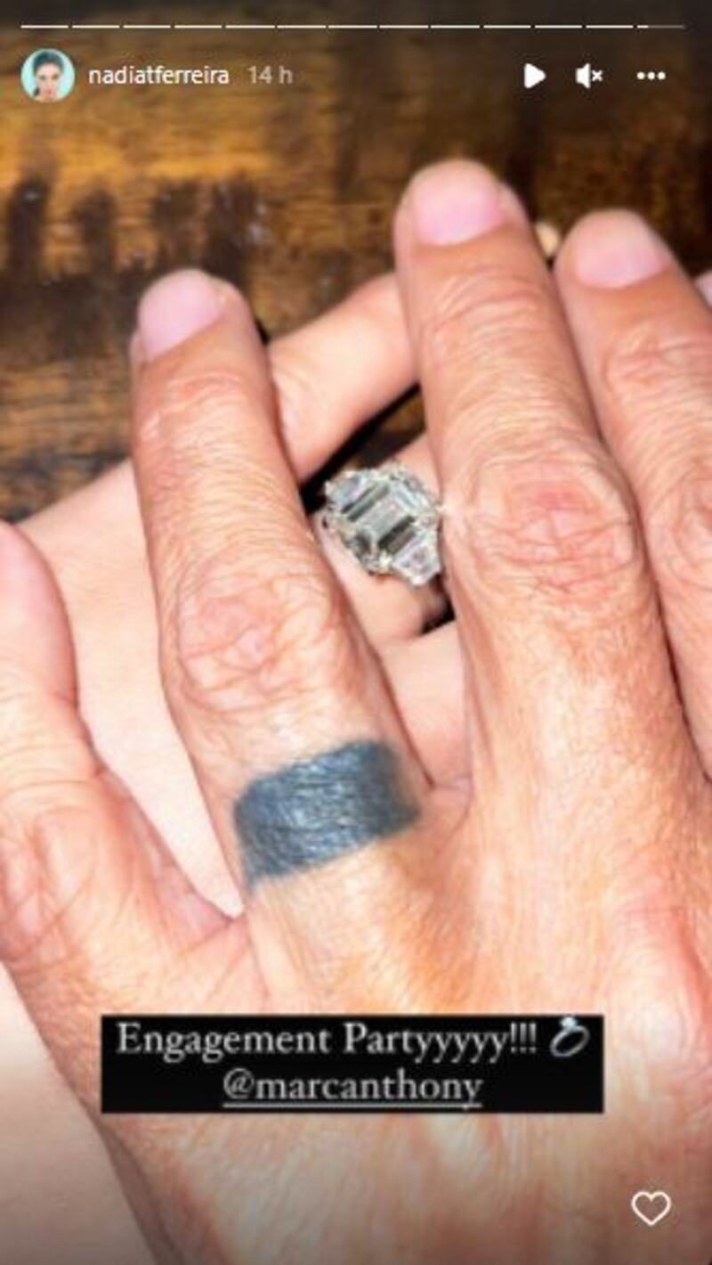Marc Anthony a vuelto a comprometerse pero esta vez con la modelo Nadia Ferreira, quien hace unos días dio a concoer la noticia a través de sus redes sociales. Ferreira mostró en sus historias de Instagram una fotografía en la que muestra sus manos entrelazadas para presumir el impactante anillo que le regaló el cantante.