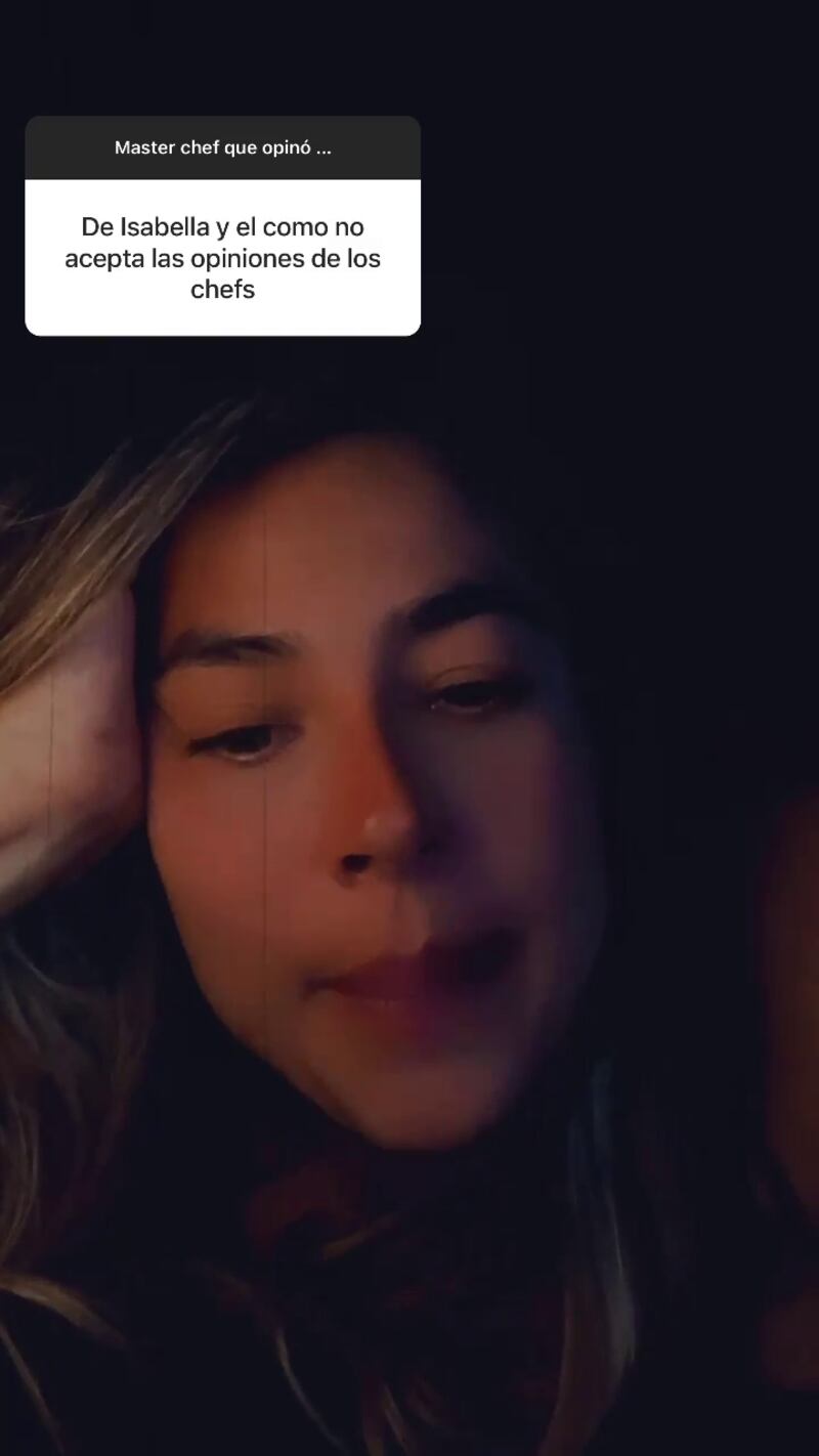 A través de una serie de videos publicados en sus historias de Instagram, la actriz aprovechó para hacer diversos comentarios sobre el último episodio de MasterChef, además de responder algunas preguntas que le dejaron sus seguidores, entre ellas cuál era su opinión sobre Isabella Santiago.