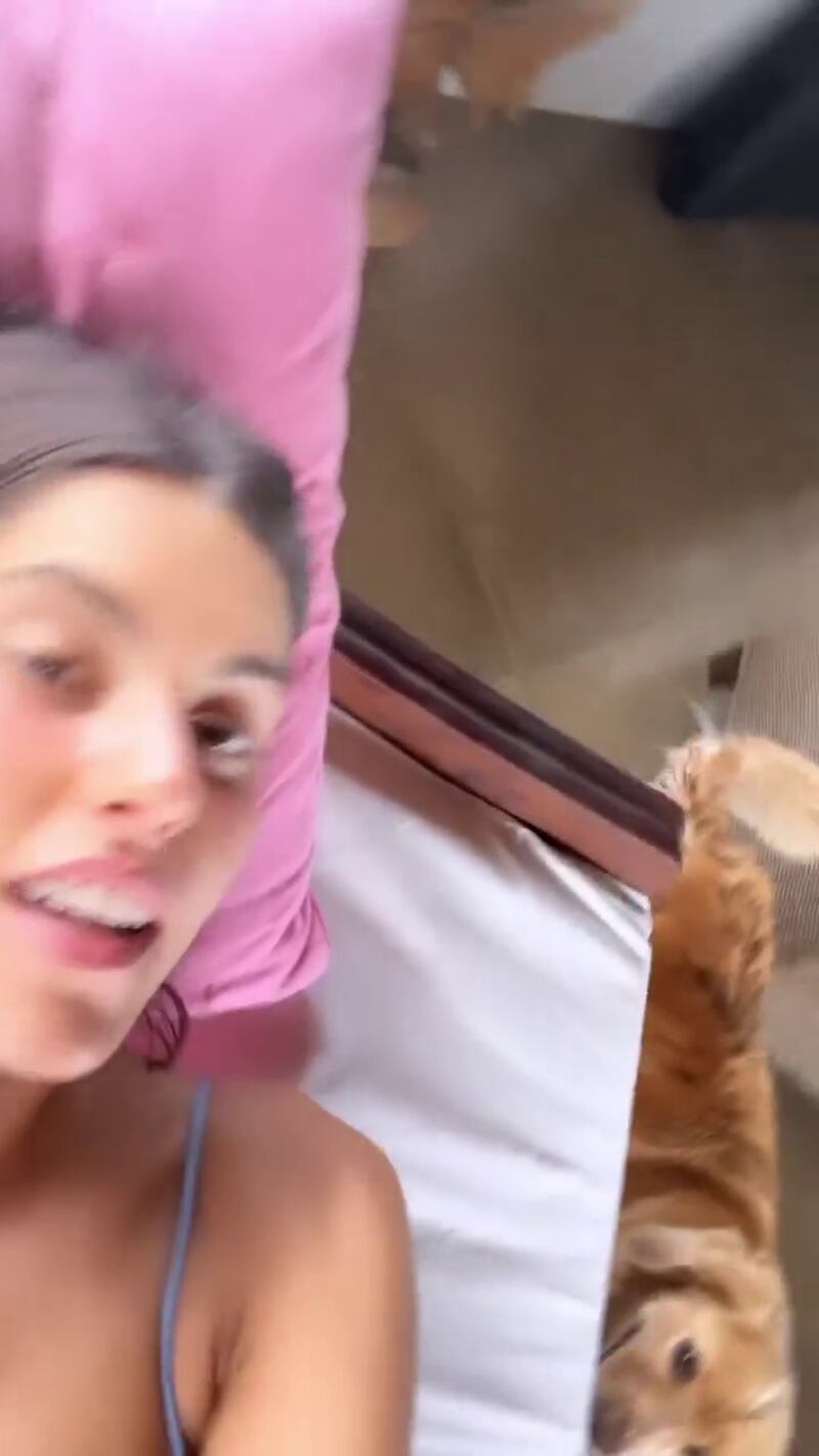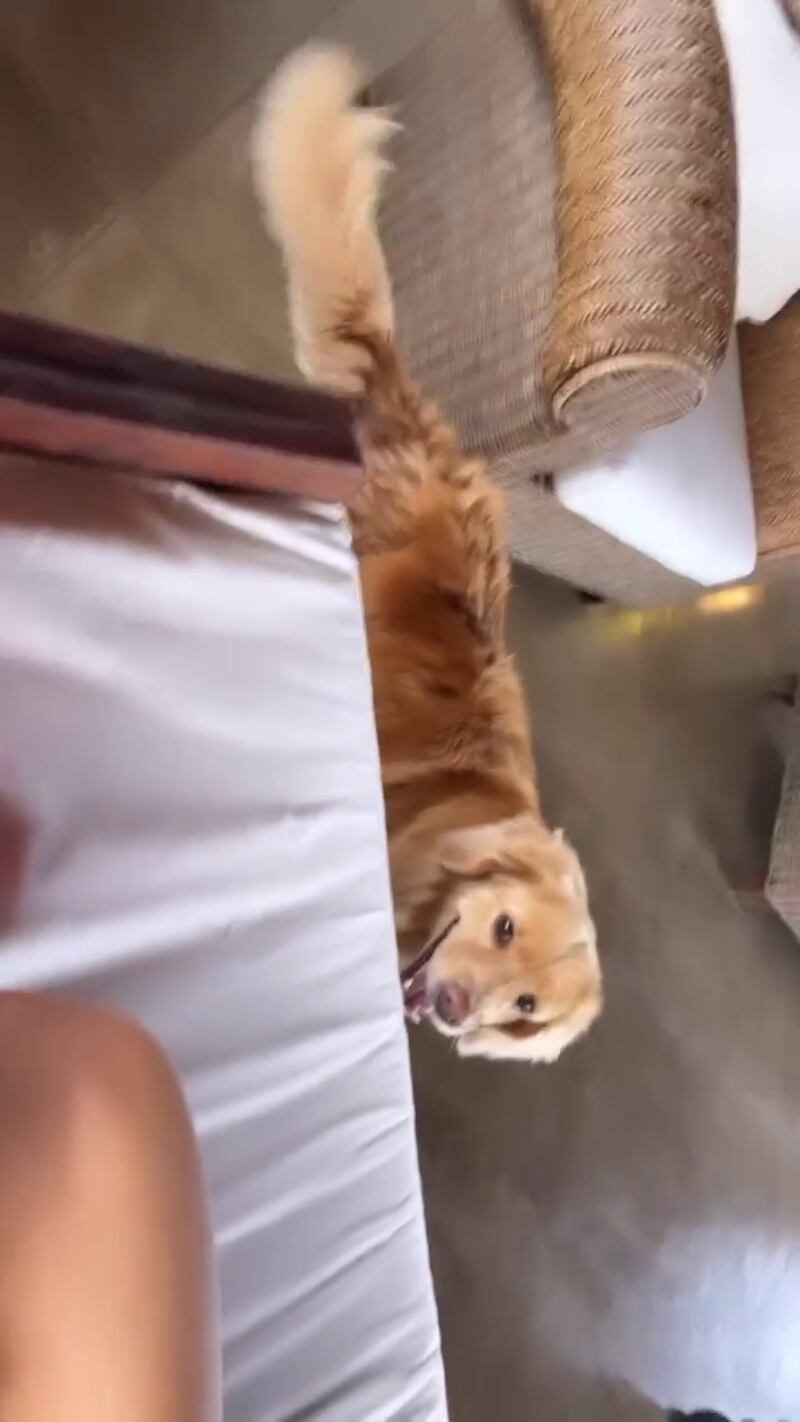 Pero en uno de los clips compartidos en su cuenta de Instagram, Paulina Vega comienza a llamar a su “hija” para que aparezca en la toma mientras ella está acostada en su cama. Seguidamente mueve la cámara a un lado para mostrar a su perrita, una golden retriever de nombre Dory a quien considera como una hija.
