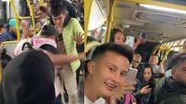 La interpretación de los artistas iba bien hasta que algunos de los pasajeros decidieron salir a bailar entre sí en los pasillos del biarticulado. Algunos pasajeros decidieron seguirles la corriente y se unieron a la mini fiesta mientras que otros se dedicaban a grabar el particular y gracioso momento.