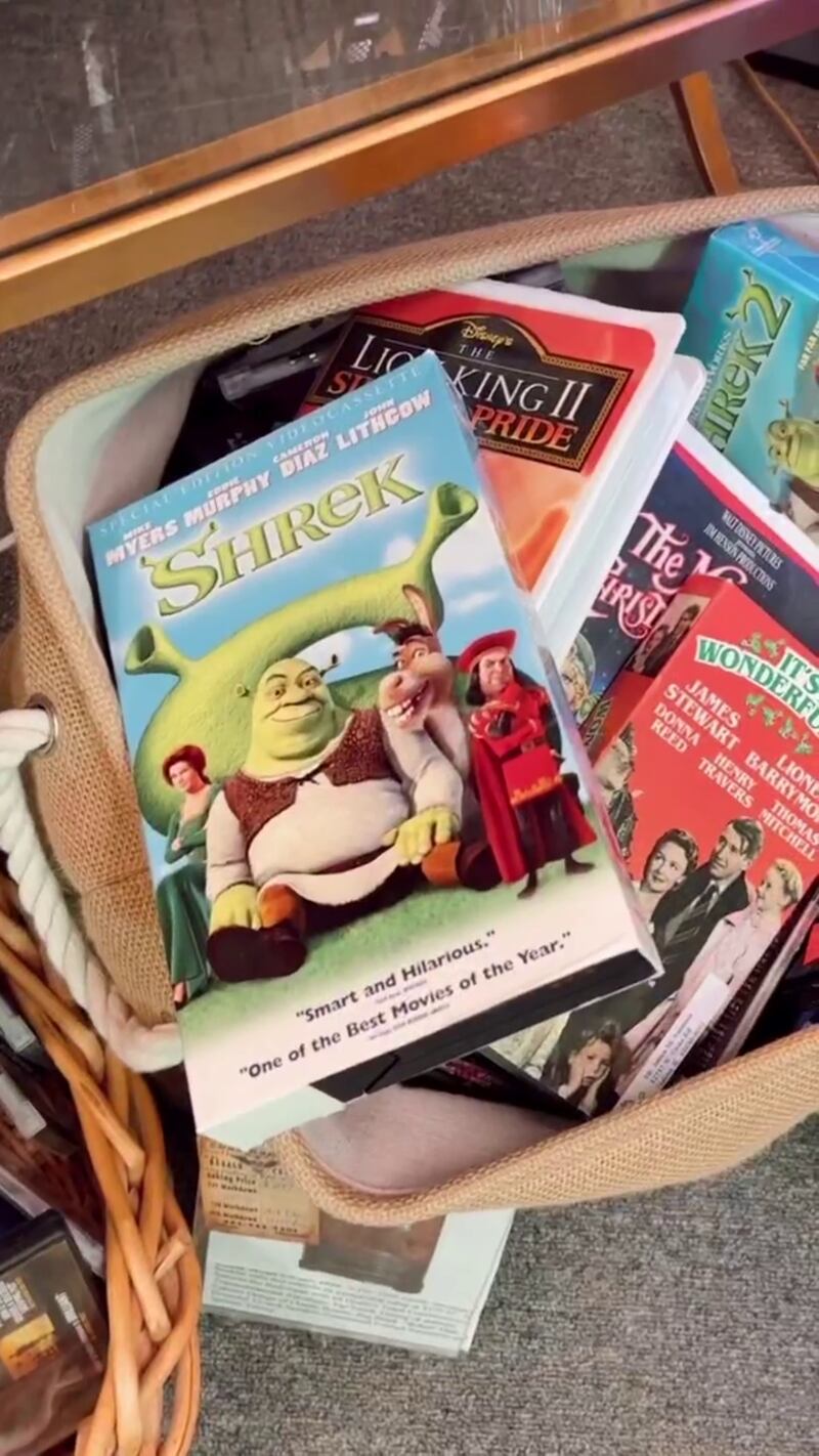Mientras relataba la anécdota con voz triste, la presentadora mostró la cinta de video de la película en cuestión junto a otros grandes títulos como la segunda parte de Shrek y la secuela de ‘El Rey León’, además de algunos clásicos navideños como ‘¡Qué bello es vivir!’ y ‘La mágica Navidad de Mickey’.