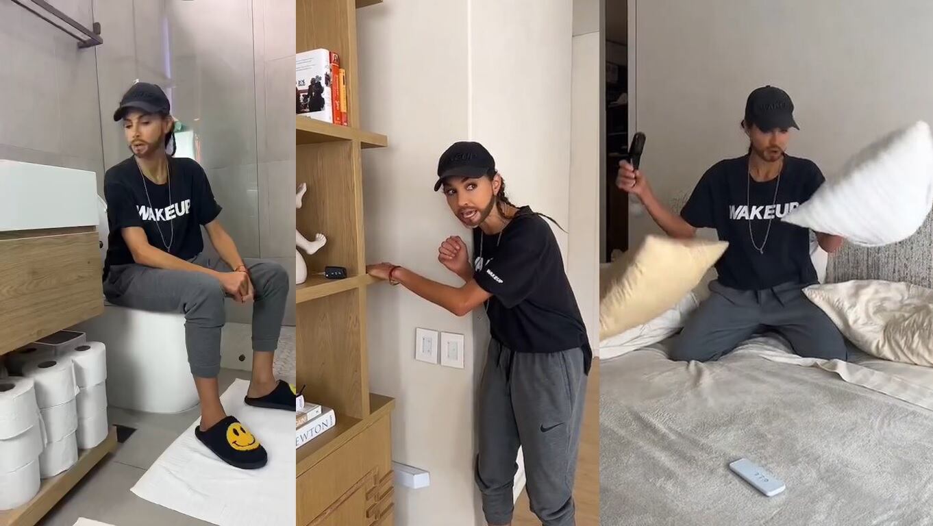 Y es que con un filtro que la hace lucir como si de verdad tuviera una barba, ella se pasea por diversos lugares de la casa, y desde cada uno de ellos como el baño, la cama y la repisa, hace las acostumbradas preguntas cuando todo está a la vista, pero nada aparece.